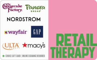 Sometimes a shopping spree is just the thing to make their day! Give a gift they can spend on a new outfit, something for home, or a little extra self-care. Exchange this RETAIL THERAPY Choice Gift Card at redeem.giftcards.com for a choice of eGift(s) to spend at one or more of these brands: Gap, Macy’s, Nordstrom, Panera Bread, The Cheesecake Factory, Ulta Beauty, Wayfair.