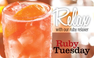 Some have a gift for great food. Others would love to get one from you. So purchase a Ruby Tuesday gift card and reward your friends and family with fresh, delicious Ruby Tuesday selections. From our Fresh Garden Bar to Americas best burger, from affordable lunch combos to signature entrees, the Ruby Tuesday menu is full of variety and value. Give a Ruby Tuesday Gift Card to anyone who likes casual dining with outstanding food served in comfortable, stylish surroundings. From the create-your-own Garden Bar to a tender Asiago Peppercorn Sirloin or Hickory Bourbon Salmon with a White Chocolate Cherry Cheesecake to finish, the experience is a total delight. For lunch try a handcrafted burger made with 100% USDA Prime or Choice beef. Your friends will love getting Ruby Tuesday Gift Cards.