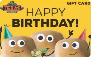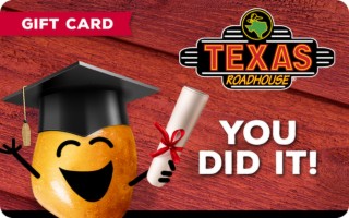 Redeemable at Texas Roadhouse, Bubba’s 33, and Jaggers restaurants in the US and Puerto Rico. No expiration date. Not a credit or debit card. Remaining value of damaged, lost or stolen cards only replaced with proof of purchase. Not redeemable for cash, except as required by law. For balance inquiries, complete terms or questions, visit texasroadhouse.com. Armadillo, Inc. or its successor or designee is the card issuer and sole obliger to card holder. Another party may be substituted as the card issuer and sole obliger without the card holder’s consent. Purchase, use or acceptance of card constitutes acceptance of these terms.